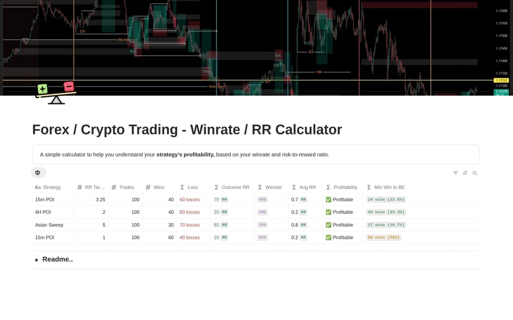 A simple calculator to help you understand your strategy’s profitability, based on your winrate and risk-to-reward ratio.